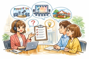 日時・会場・規模、、決定後(または会場下見後)演出案を提案いたします。